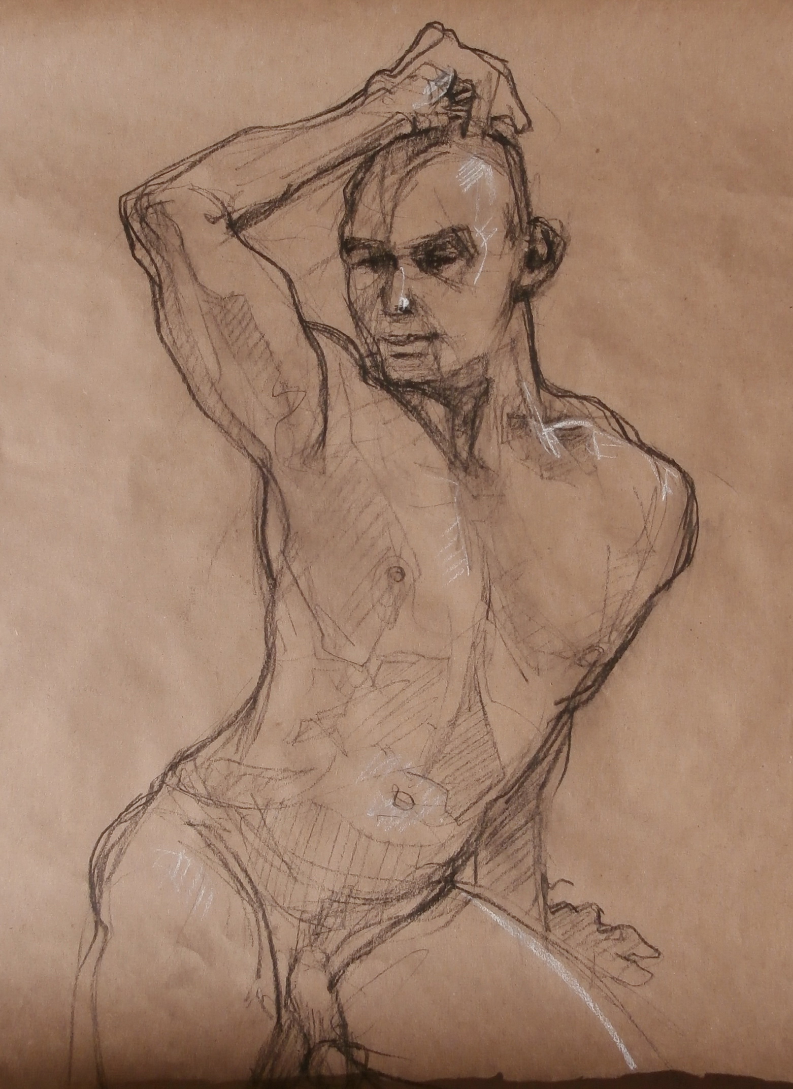 Charcoal on brown craft paper 25 minutes