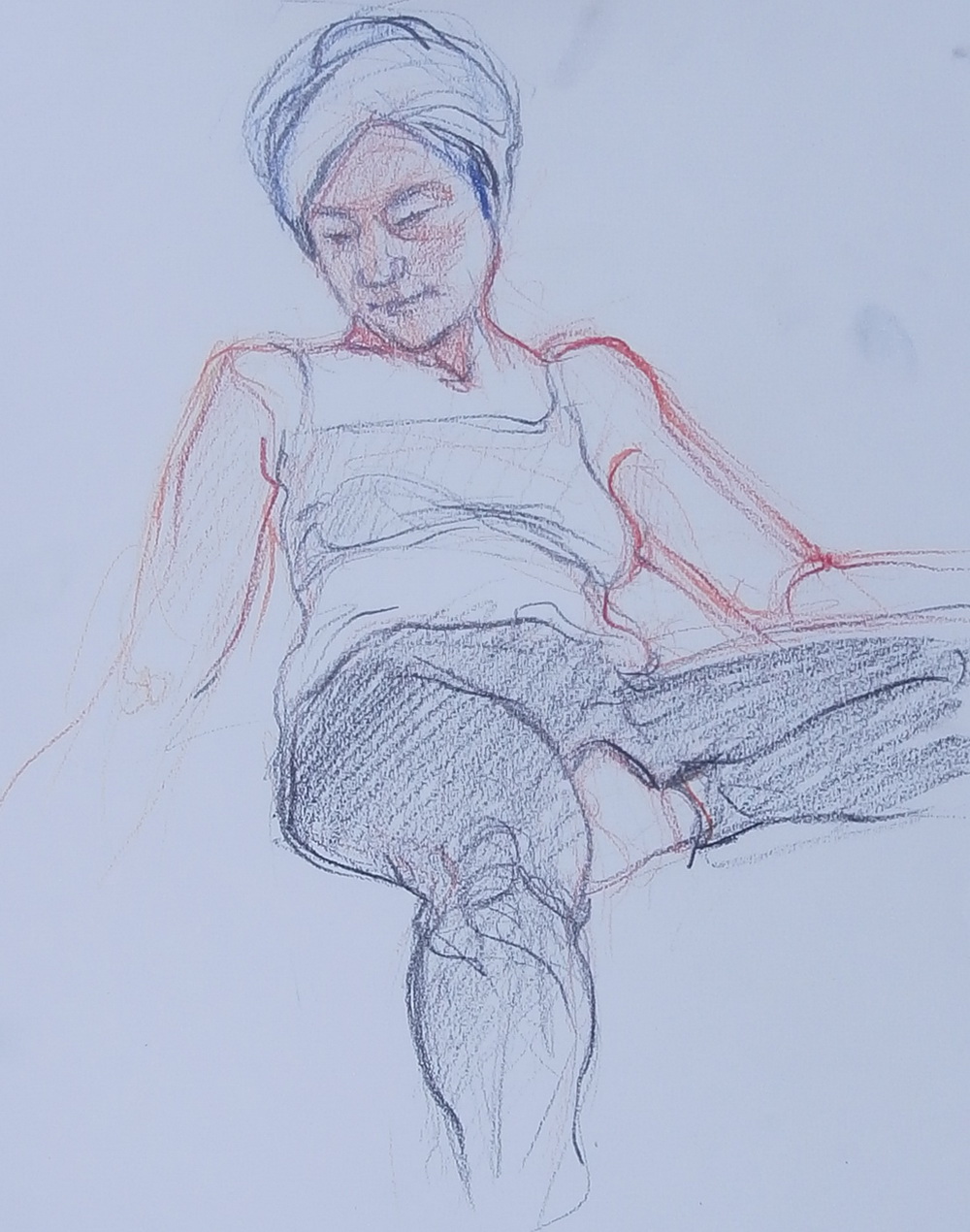 The group of us which meets regularly for life drawing organized a retreat for intensive focus on our work. Yesterday was the final of five days and here are a few samples of my work from that time. To see the work of someone else have a look at Anne Jarvis Art blog (in links).